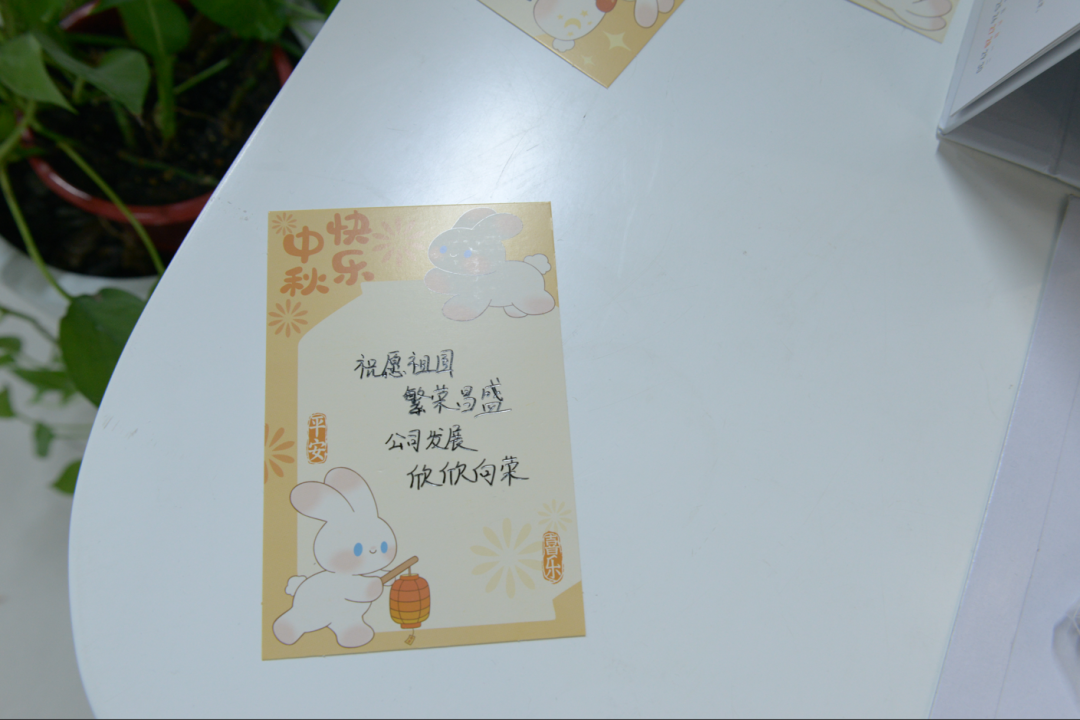 在"中秋寄语祝福墙"前,小伙伴们用荧光笔许下最美好的愿望。这些或幽默或走心的字迹,连同合影区的搞怪pose,都成了企业文化最鲜活的注脚——最好的凝聚力,就藏在这些不经意的欢笑与真诚里。