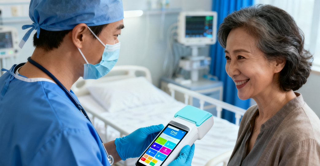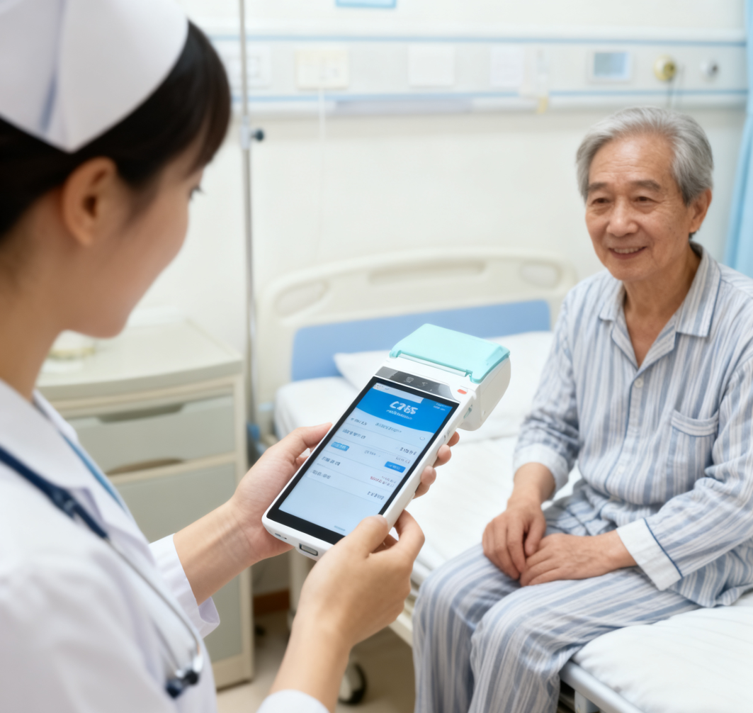 以往,患者出院结算需从病房到结算窗口排队,再到打印清单、核对费用、医保报销,往往要在医院多个区域间折返,尤其对术后患者、高龄老人、行动不便者而言,更是“体力考验”。中安创智床旁结算系统针对医院面临的结算流程繁琐、患者满意度低、资源浪费等问题,推出符合医院使用场景的“手持式移动医保服务终端+物联网卡”模式实现床旁结算,这项落在实处的服务,也收获患者和医务人员的一致好评。